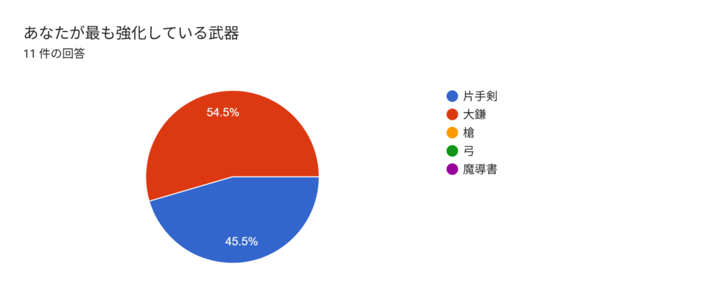 こちらは大鎌か片手剣は想定通りで、ほぼ半々となりました。