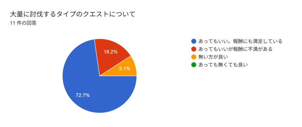 また、大量に討伐するクエストに関しては運営想定としては週をかけてやるような感じを想定していますが初心者等にとっては多すぎると感じる方が多いと思っている為討伐数と報酬の緩和の方向性で考えています