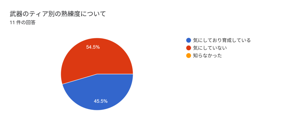 ティア別熟練度は丁度別れた感じの結果になりました。