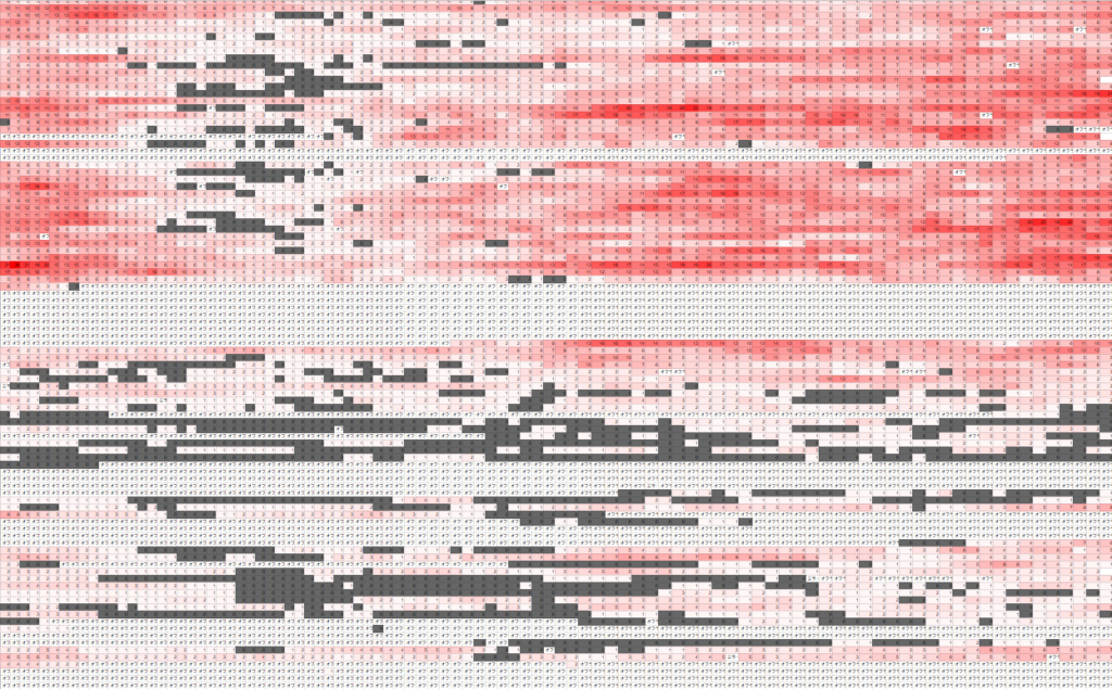 中間のオフライン期間が事情でサーバーが開けれていない期間で丁度夏休みシーズンだったのもかなりの打撃でした。復帰後はほぼ色が付かないレベルなのがわかります
