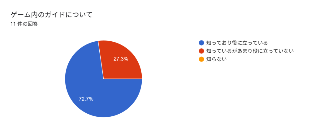ゲーム内ガイドに関しては3割の方が役立っていないとの回答を頂きました。