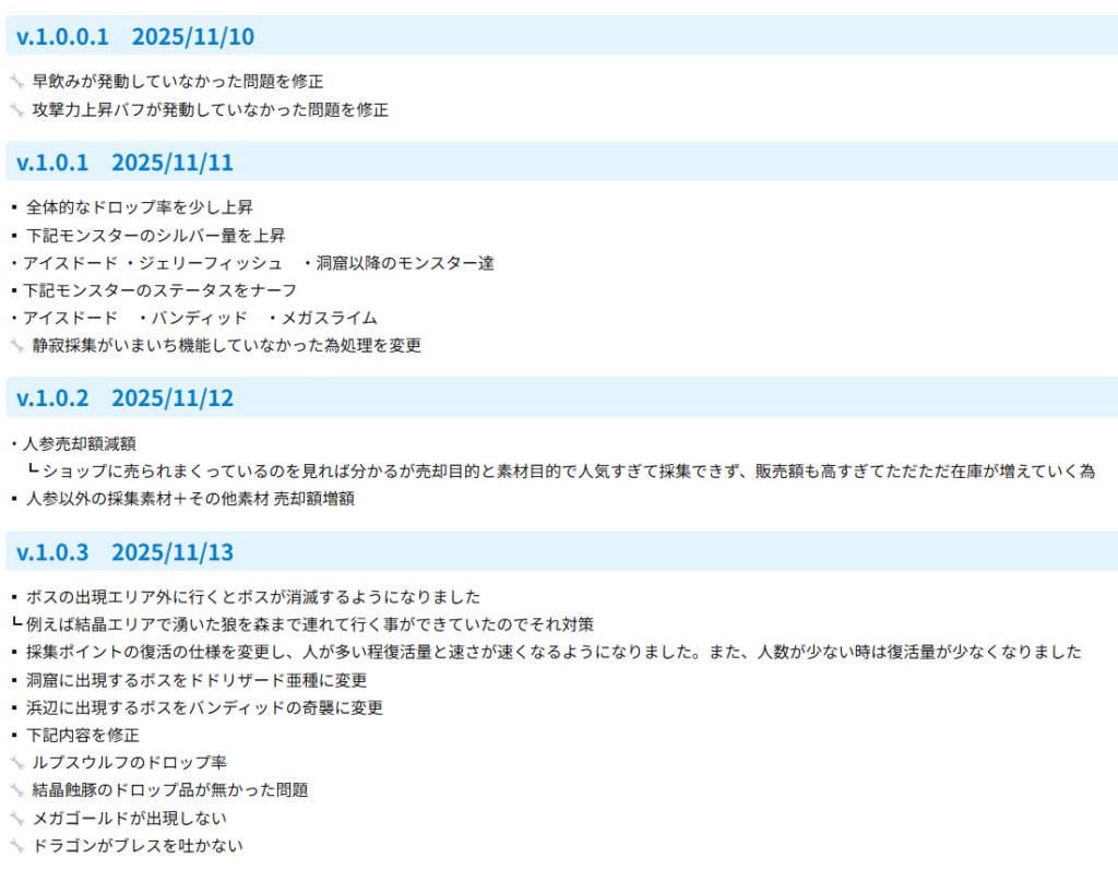 ぶっちゃけこちらはシンプルにHunt of Craftのアップデートを行っても過疎化が戻らなかったのが要因です。