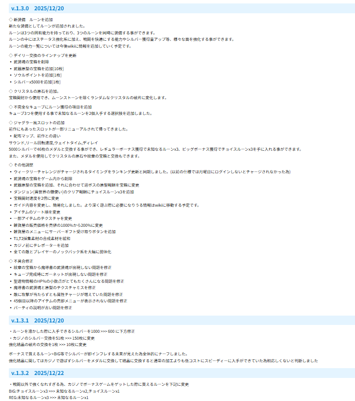 また、ディープダンジョンも現在は初級のみですが新たな難易度の追加とそれに伴う限定のルーン、または装備も実装したいと考えています。ただ、前回のルーンが強すぎる為、どういった形にするかがまだ何も決まっていないのでこちらはかなり後になるかと思われます。